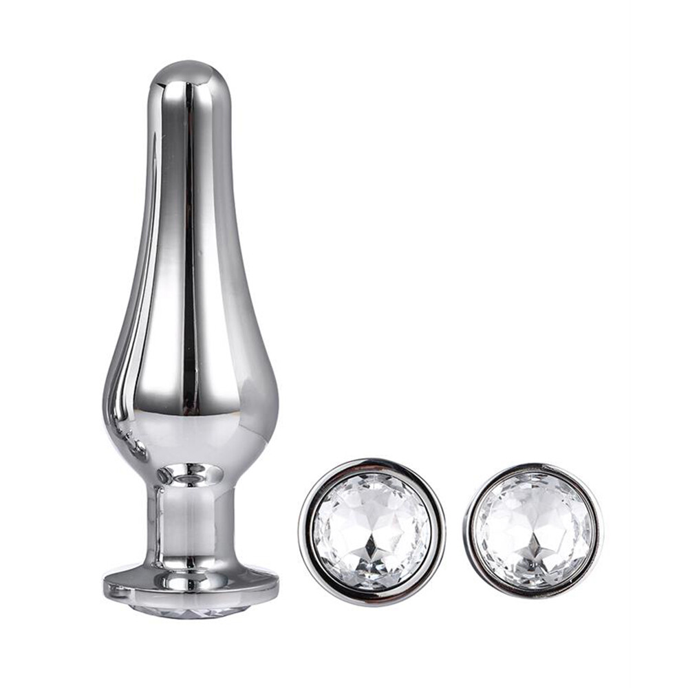 The Gleaming Love collection presents this set of conical shaped and shiny anal plugs with a gemstone in the base. Made of smooth lightweight aluminium and seamless, these pleasure toys are easy to glide and the increasing size is guaranteed to induce pleasure. The flared base ensures a sense of security while keeping the jewel sitting comfortably between the butt cheeks.The jewelled plugs are beautifully decorated with a delicate round gemstone. From tip to base the seamless anal plugs feature a glimmering sheen that pairs wonderfully with the sparkle of the matching gemstone. The tapered conical shape of the plugs combines ease of use with erotic backdoor pleasure. The Gleaming Love plugs can be heated or cooled in water before use to provide additional sensations.A storage bag made of soft velvety fabric that closes with a drawstring is included.Dimensions Small length 9,0 cm Small diameter 2,9 cm Medium length 11,0 cm Medium diameter 3,4 cm Large length 12,7 cm Large diameter 4,0 cmMade from Aluminum